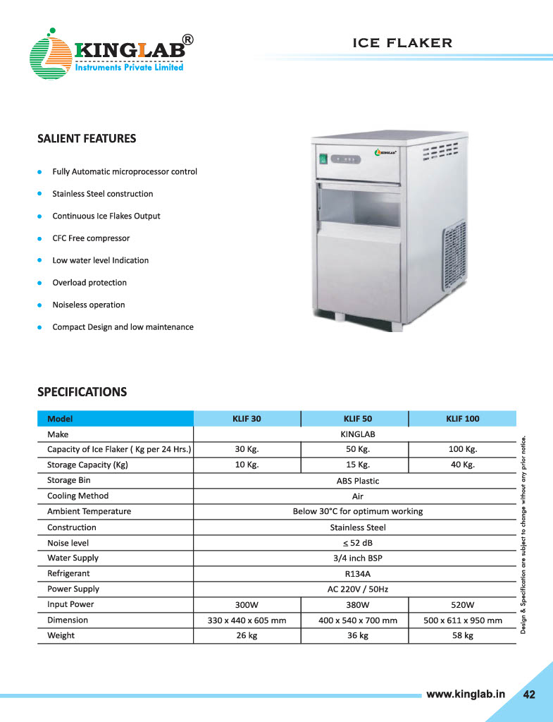 ModelKLIF – 30, KLIF – 50, KLIF – 100ICE Flaker SKU: N/AIn Stock₹130,200.00 – ₹290,000.00Price range: ₹130,200.00 through ₹290,000.00 Exclude GSTOrder on WhatsAppModel Choose an optionKLIF - 30KLIF - 50KLIF - 100Clear ICE Flaker quantity Add to cart Buy Now Category: Ice FlakerTag: ICE Flaker Brand: KINGLAB Description Additional information Reviews (0) DescriptionAdditional informationModelKLIF – 30, KLIF – 50, KLIF – 100 ReviewsThere are no reviews yet. Be the first to review “ICE Flaker” Cancel replyYour email address will not be published. Required fields are marked *Your rating *Rate…PerfectGoodAverageNot that badVery poor Your review *Name *Email * Save my name, email, and website in this browser for the next time I comment.